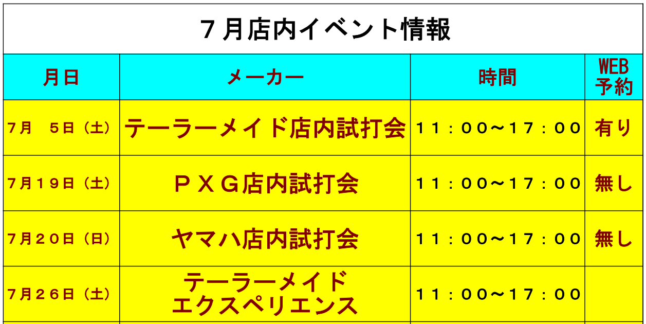 【ご自身に合うゴルフクラブを!】7月店内イベントのご案内