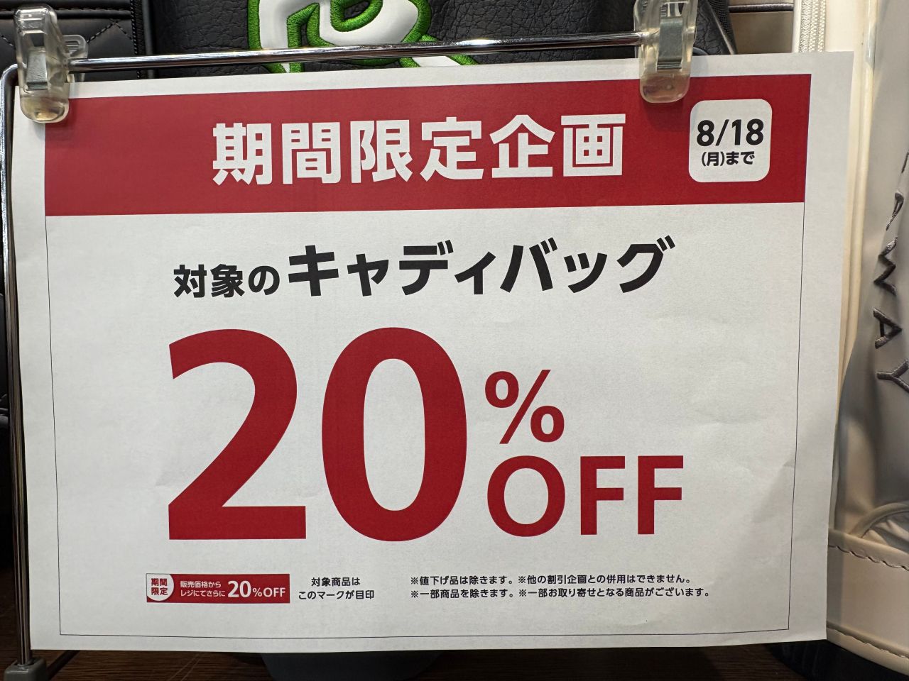 ・対象キャディバッグ20%OFF