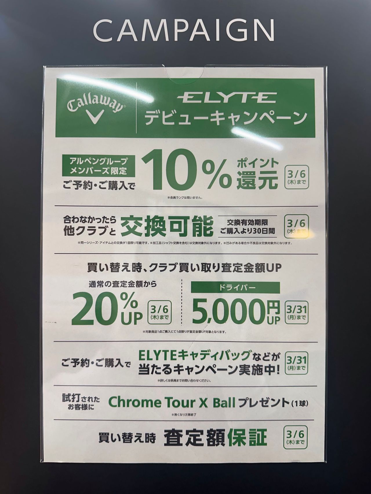 ・クラブ買い替え時、査定額アップ 他