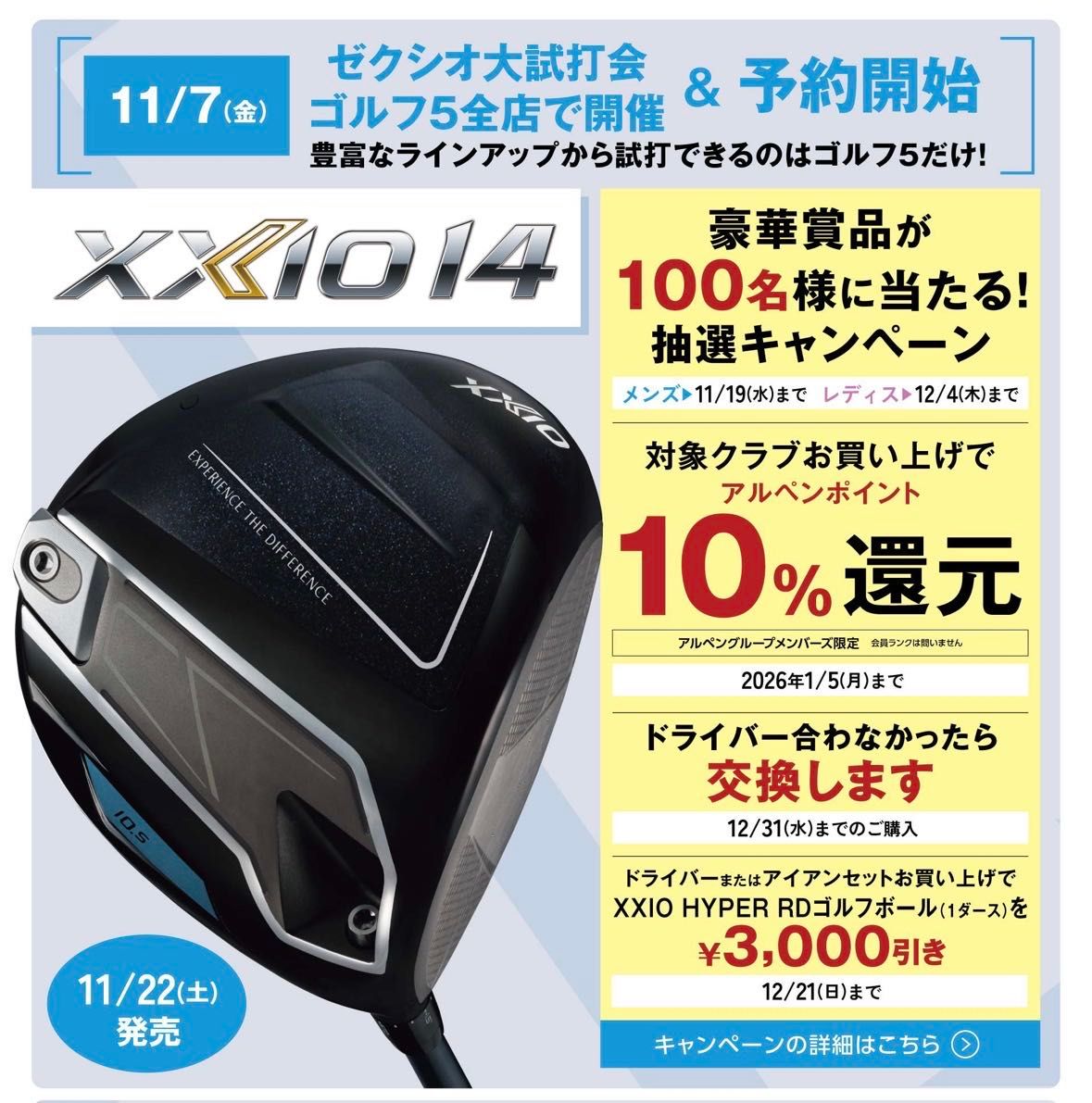 11/7(金)からゼクシオ大試打会がゴルフ5全店で開催され、