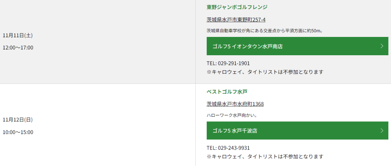 11月12日(日)10:00~15:00 ベストゴルフ水戸