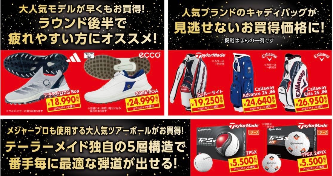 シューズ、キャディバッグ、ボールも期間限定でお買得にご購入いただけます!