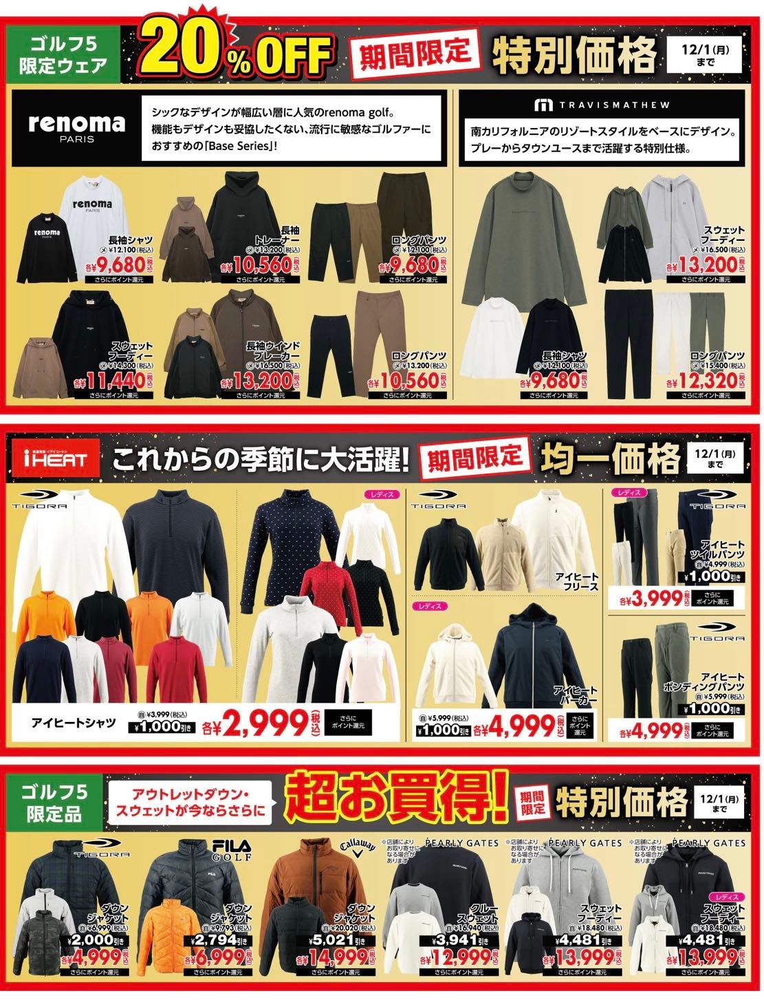 アパレルも期間限定20%OFFや2,999円〜と大変お買得にご購入いただけます!