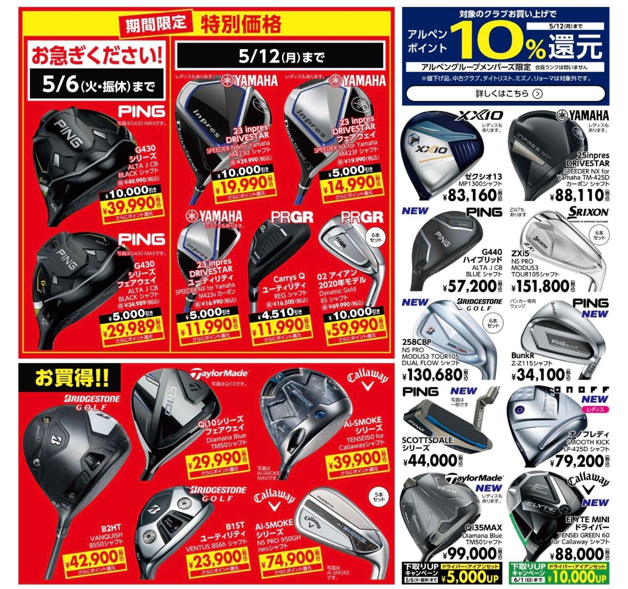 そのほか、中古クラブをご購入でアルペンポイント10%還元など、前回から好評だった企画が継続しています!