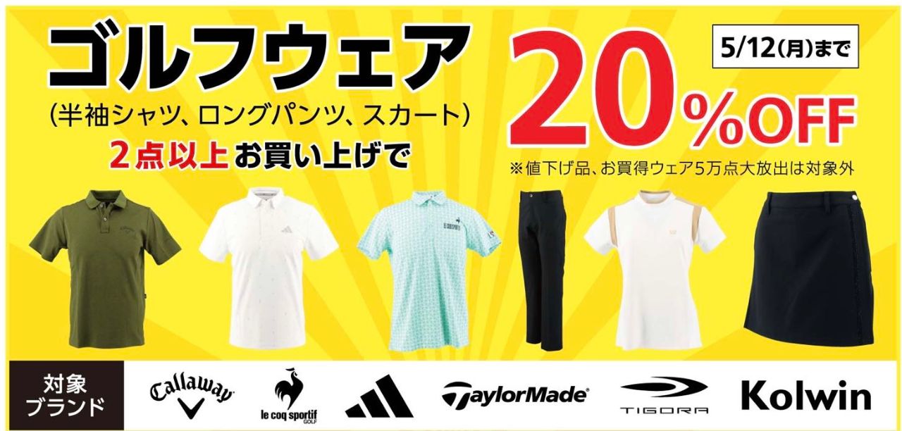 ★ゴルフウェア『半袖シャツ』『ロングパンツ』『スカート』2点お買い上げで20%OFF★