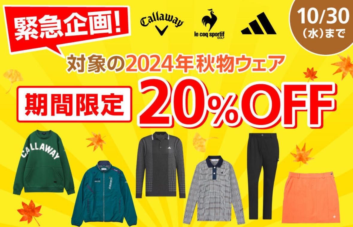 只今キャロウェイ、ルコック、アディダスの今着れるウエアが