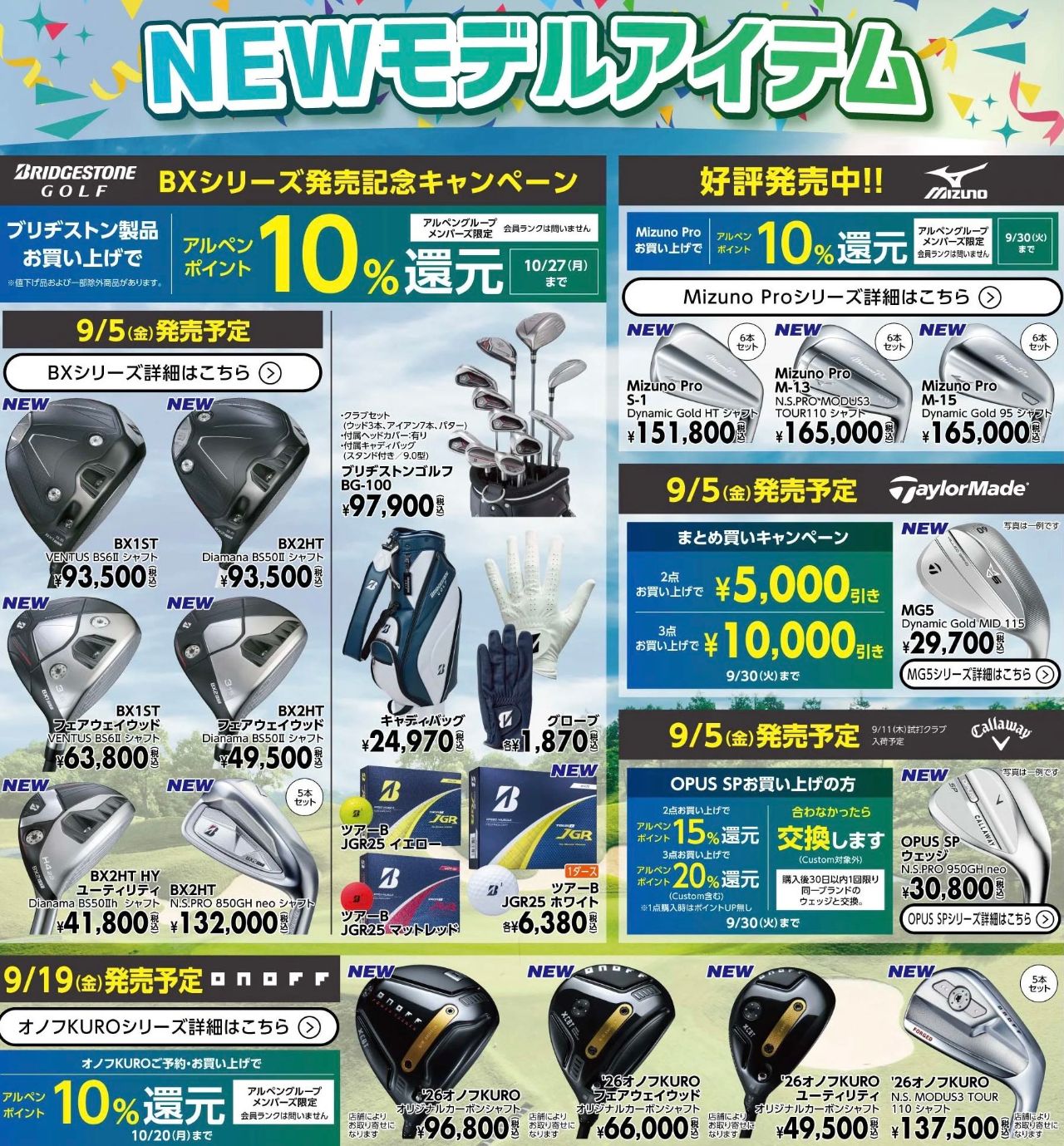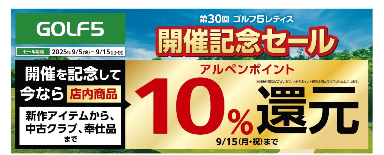 ほぼ全品が『アルペンポイント10%還元』ゴルフ5レディス開催記念SALEは9/15まで