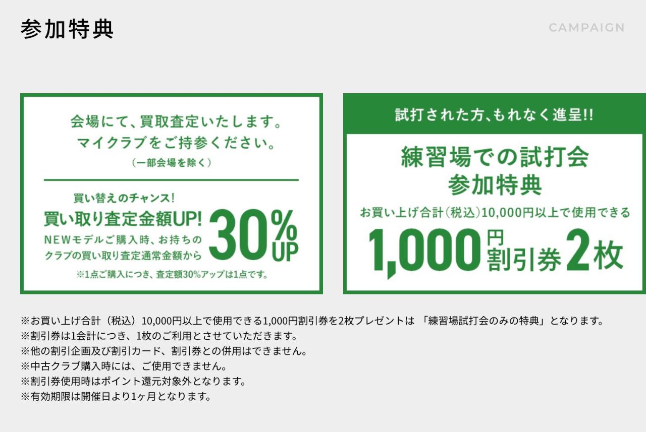 査定額アップや割引券プレゼント等の試打会参加特典