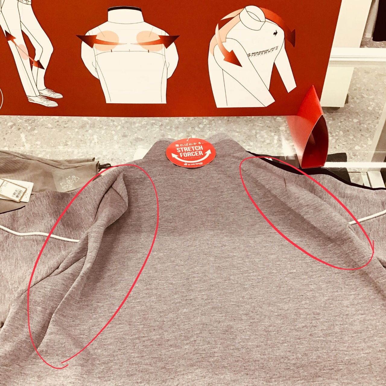 ウェアの背面を上にして平らなところに広げてみると‥