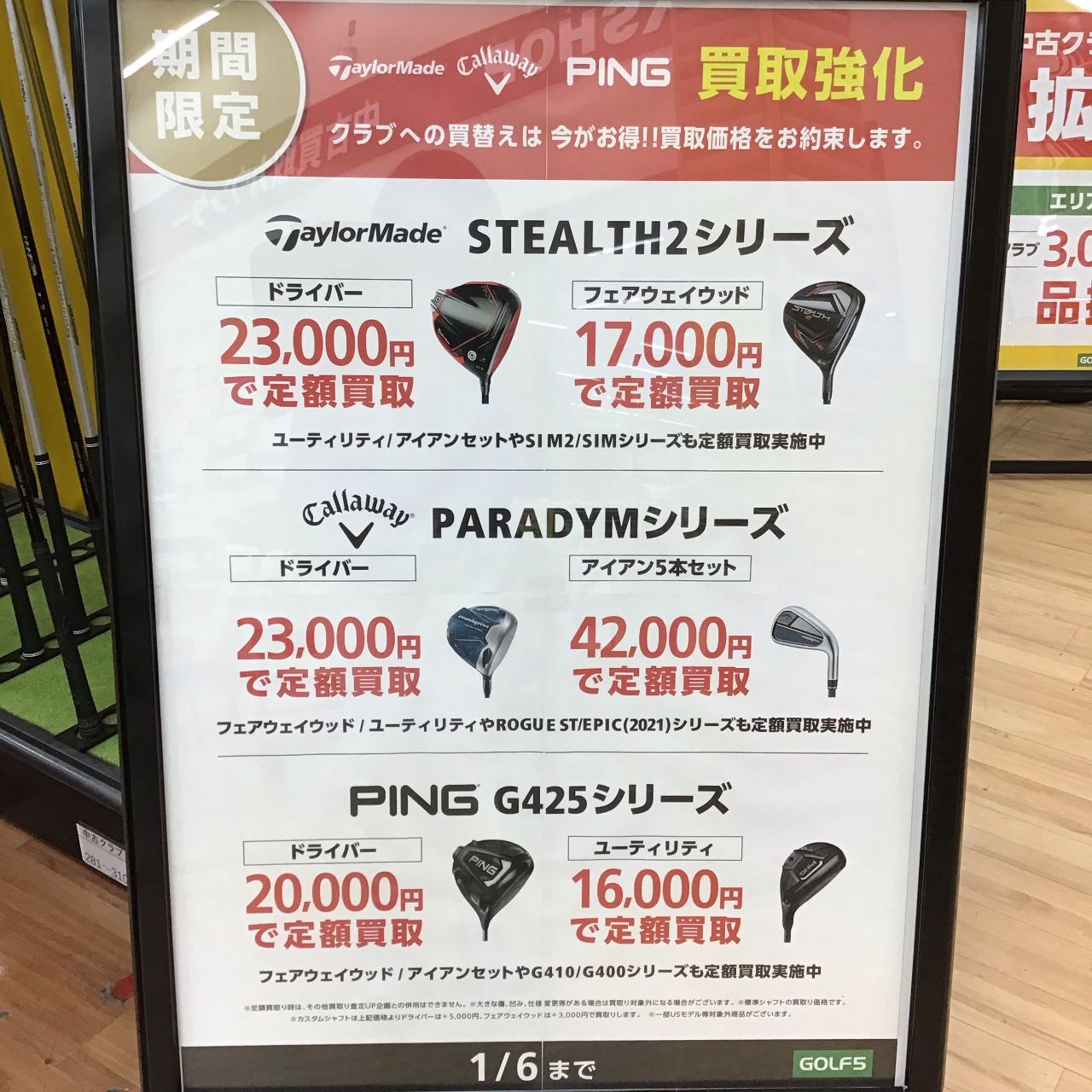 また、テーラーメイド、キャロウェイ、ピンの特定クラブシリーズであれば