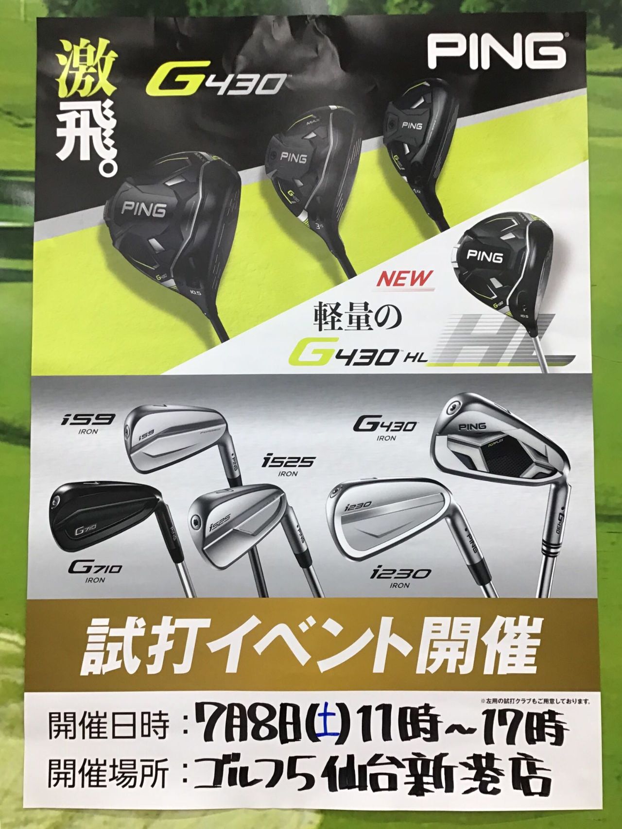 【 開催迫る!】激飛G430‼️大好評!ピンゴルフの試打イベント開催決定‼️軽量モデルのHLも仲間入り❗️