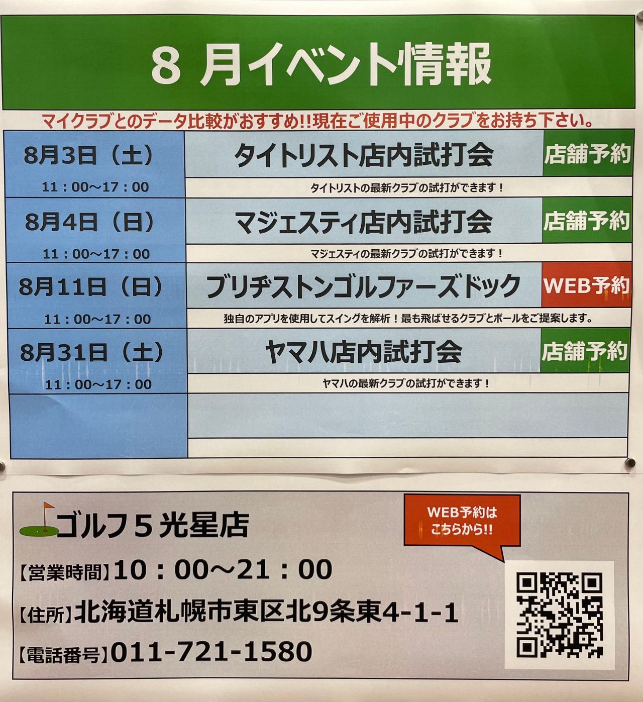 本日は光星店8月の試打スケジュールのご紹介です( ◠‿◠ )