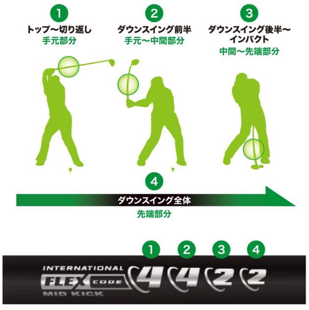 シャフト全体を4分割にして各部の相対的な硬さを
