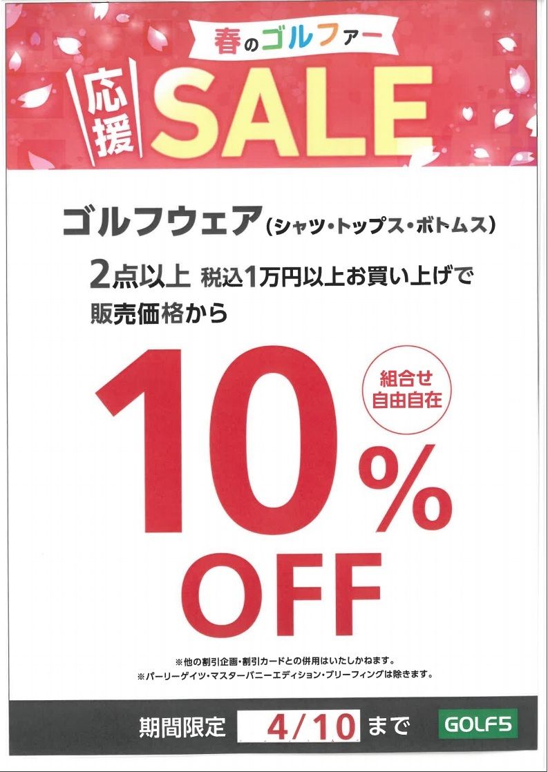 まとめてお求め頂くには絶好の機会となっておりますので、春物ウェアをお求めのお客様はご活用ください!