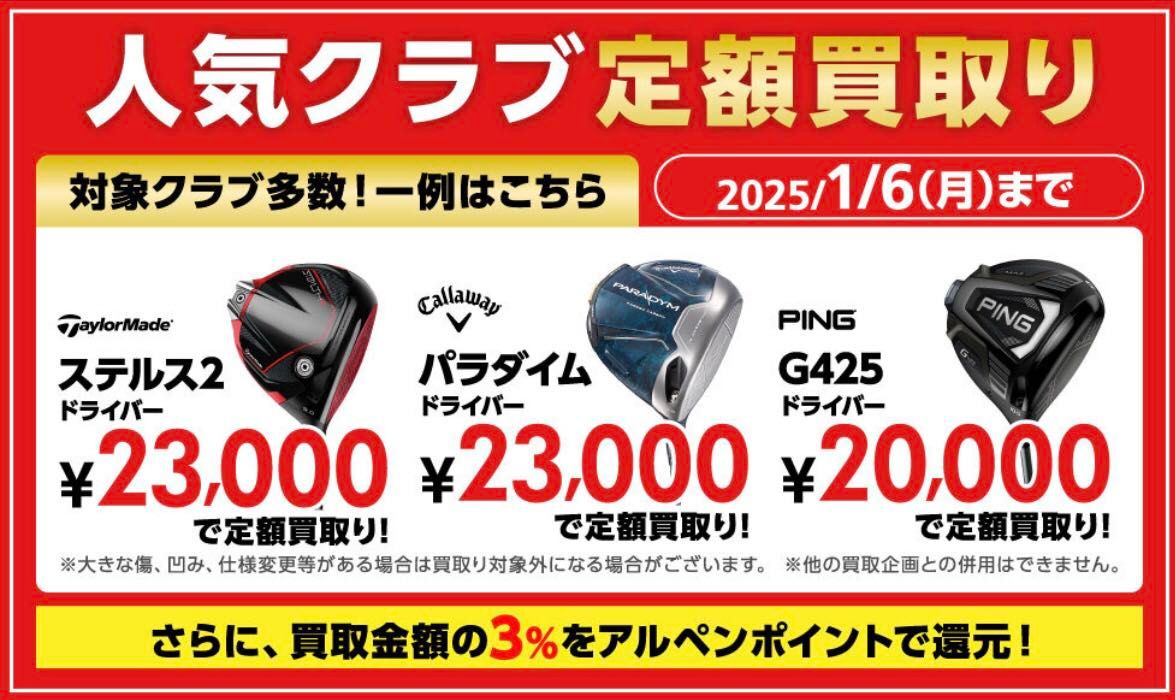 対象クラブを、定額買取します! (^_-)-☆