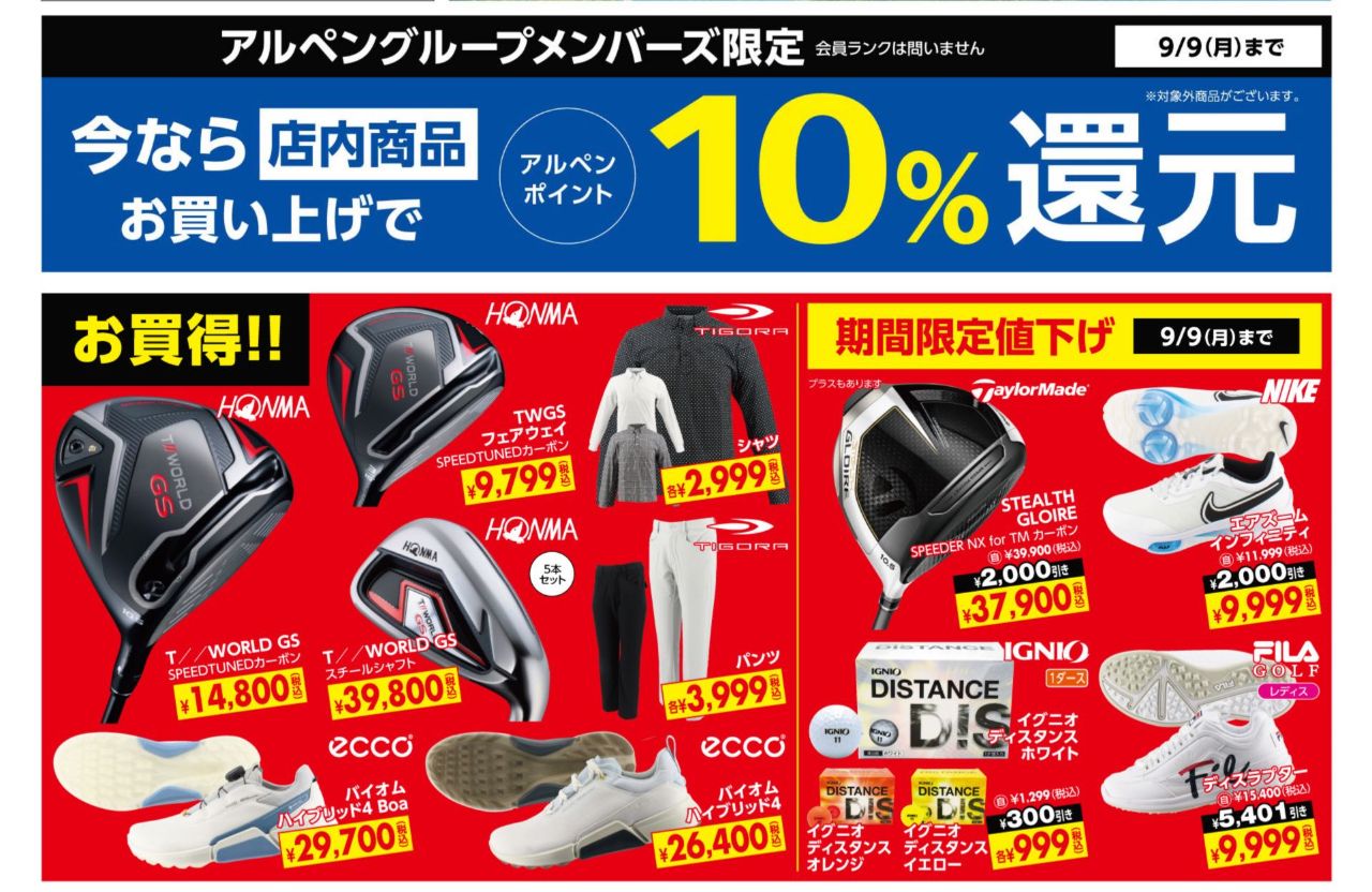 NO.1 店内商品お買い上げ時、アルペンポイント10%還元