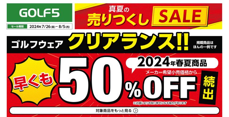 ★ゴルフウェアでは、早くも50%OFF続出中!