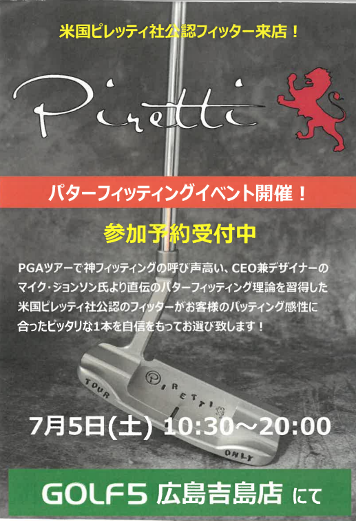 「ピレッティ パターフィッティングイベント」のご案内です♪