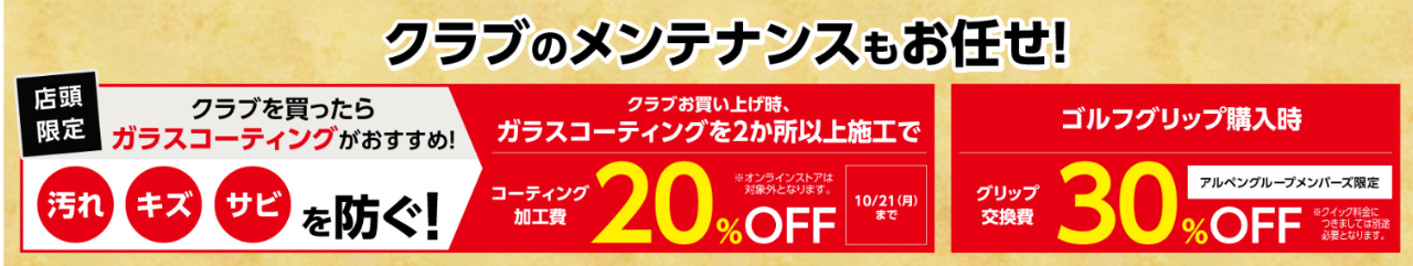 クラブ ガラスコーティング2か所以上で20%OFF!!