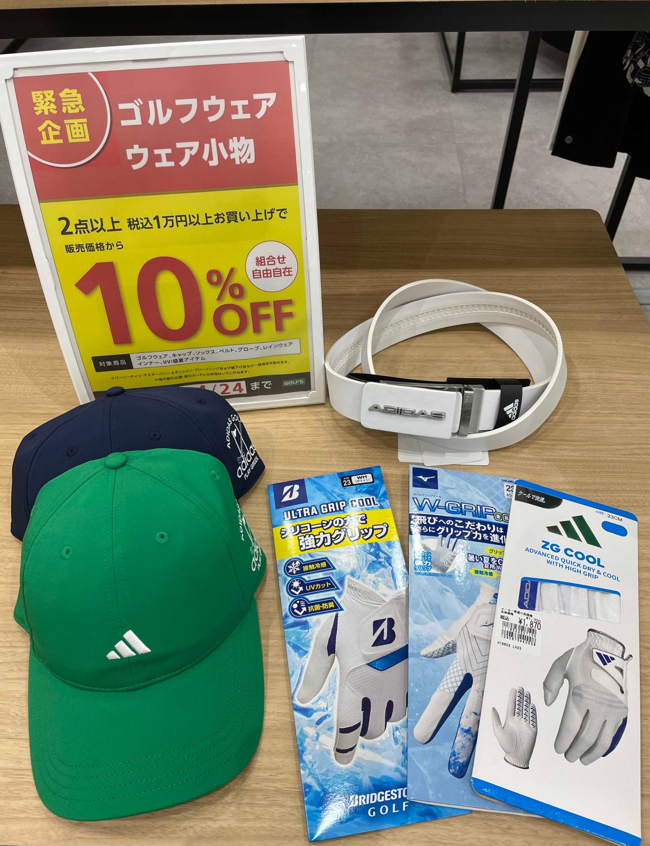 今回はゴルフウェアだけでなく、ウェア小物も対象です。