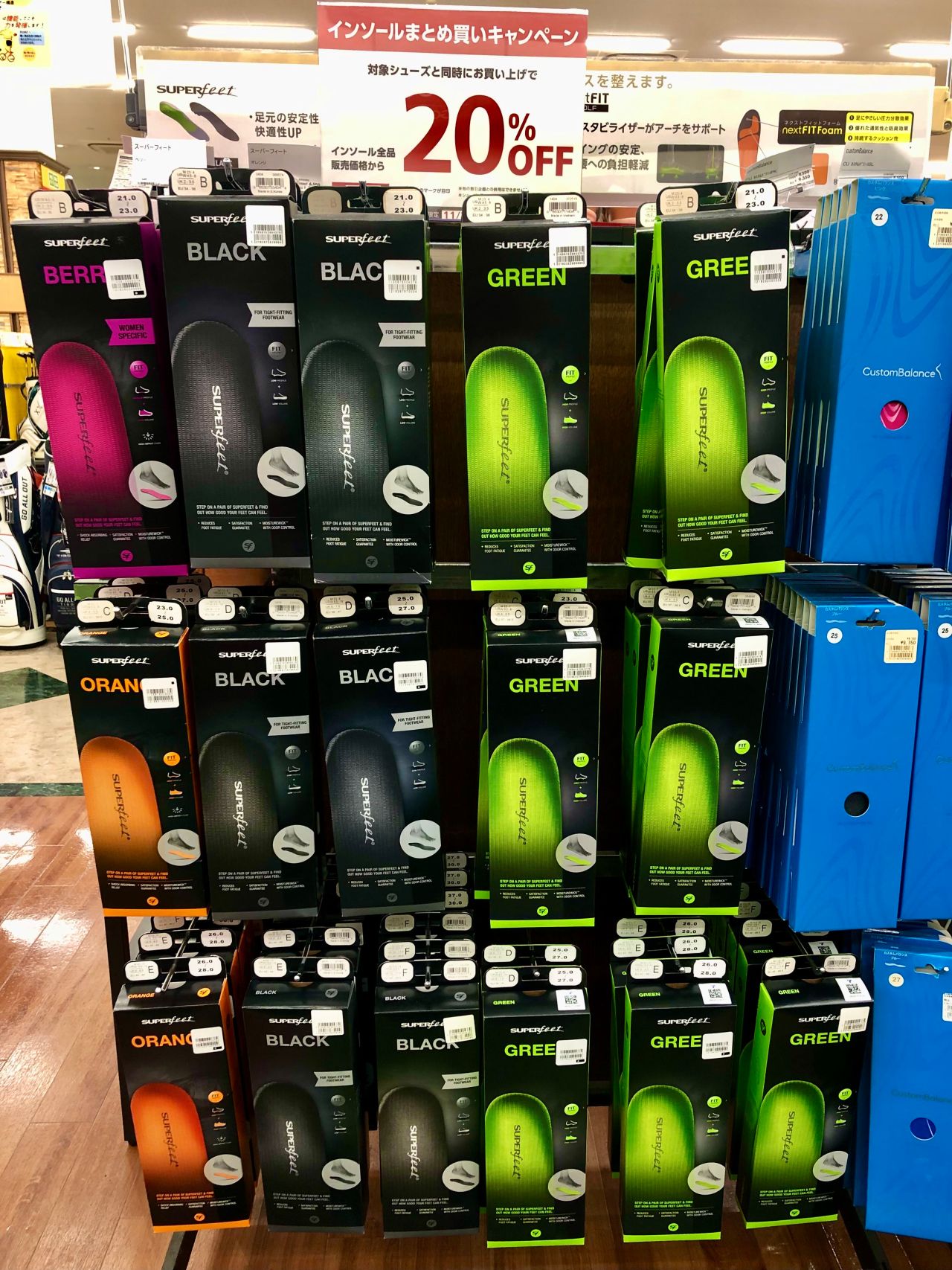 インソールが20%オフとなります。