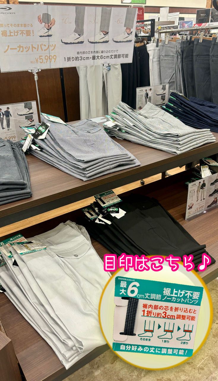 丈を最大6センチ調節出来るパンツ!