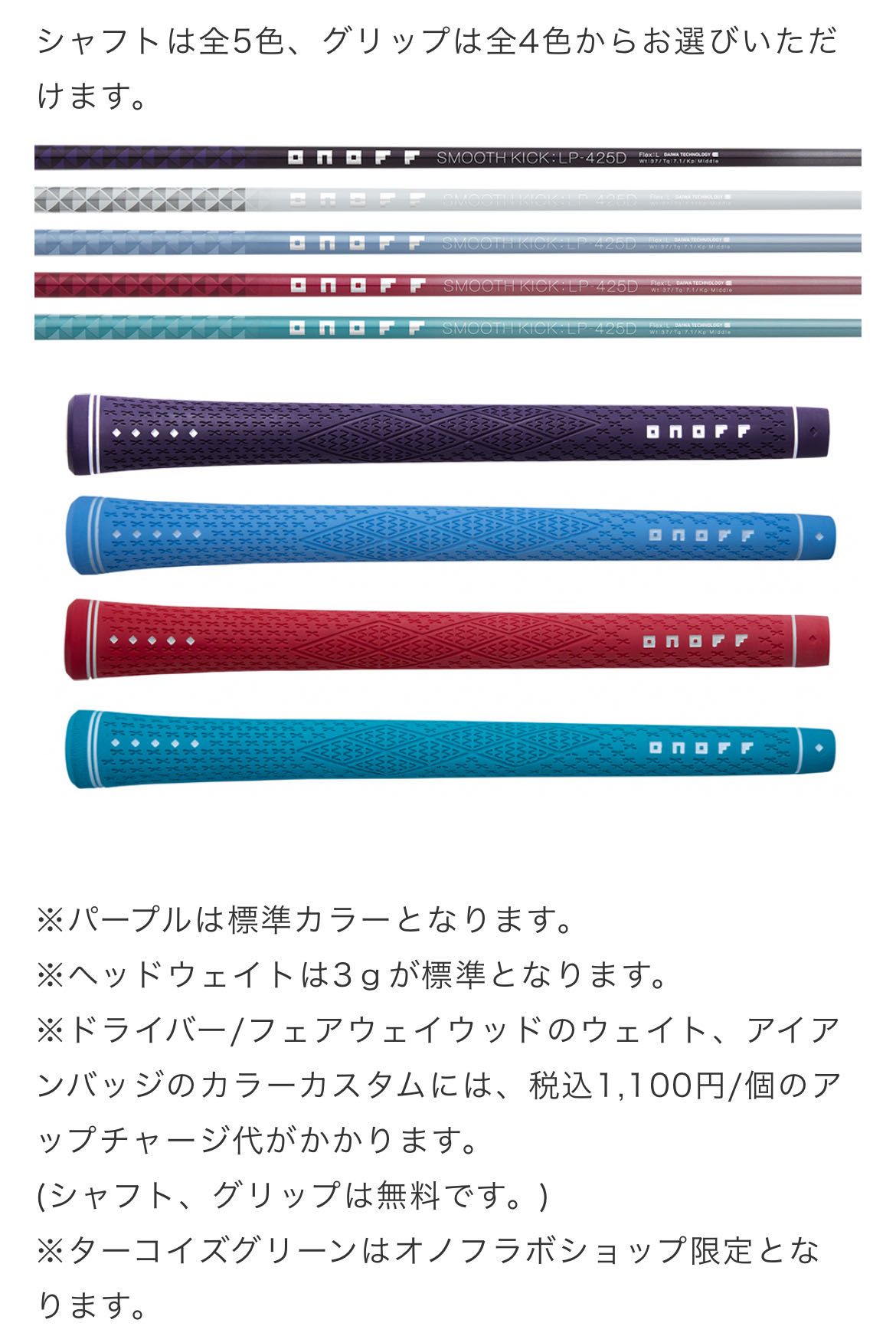 シャフト 5色展開