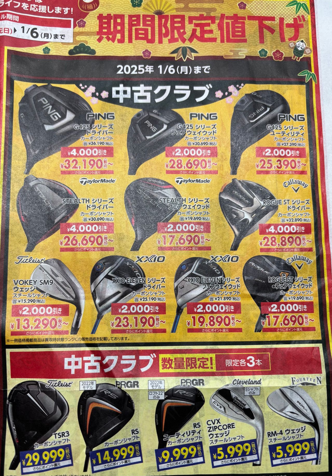 中古クラブは2点ご購入で10%offとなっております!!