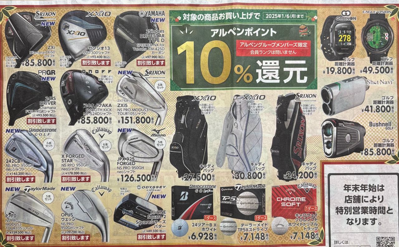 そのほかにも、ボール・距離計・キャディバッグなどがポイント10%還元✨