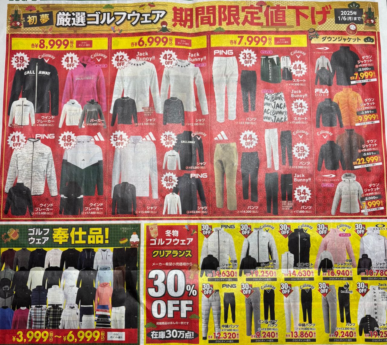 中でも目玉商品は30%offからさらに期間限定値下げの冬物ウェアです!