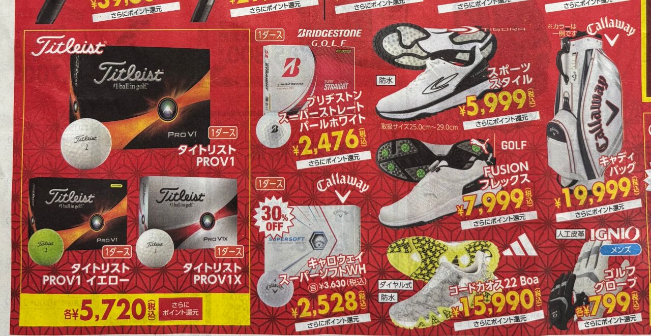 タイトリストPROV1が1ダース、5,720円!!コードカオス22が15,990円!!