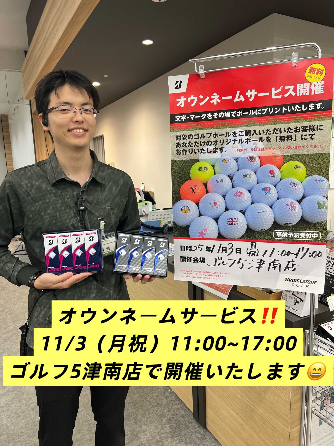 この度、当店ではブリヂストンゴルフボールのオウンネームサービスを開催いたします!