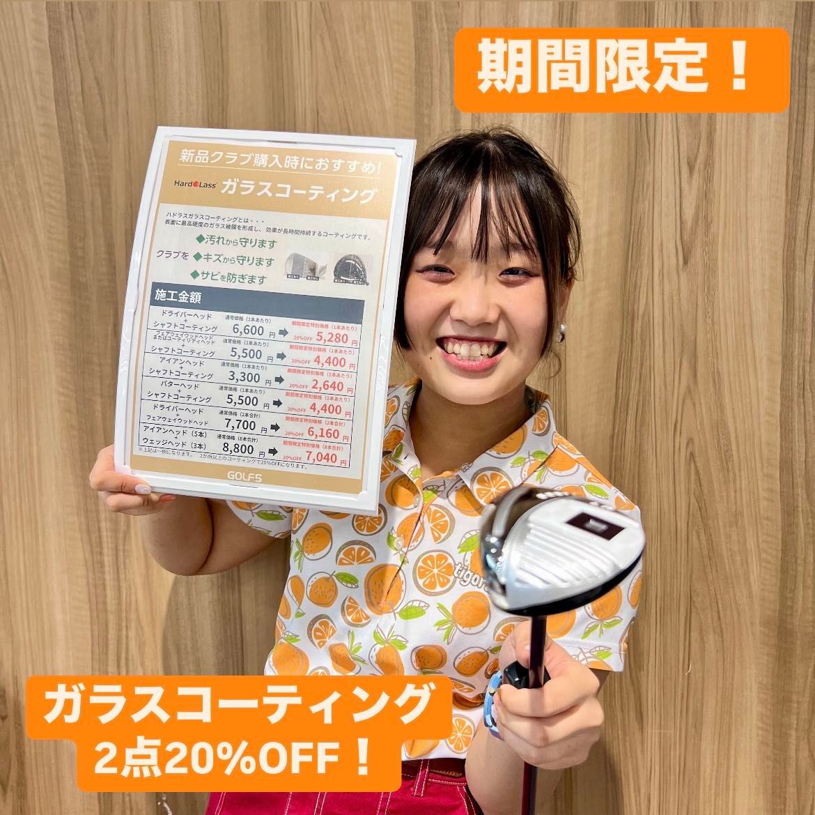当店では、期間限定でゴルフクラブのガラスコーティング加工を2か所で20%OFFキャンペーンを行っております!