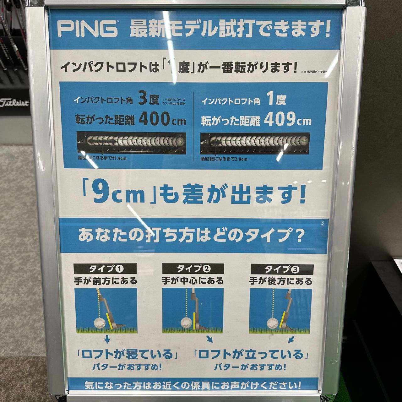 ロフト角1°.3°.5°の試打クラブもご用意がありますのでぜひ体験してみてください!