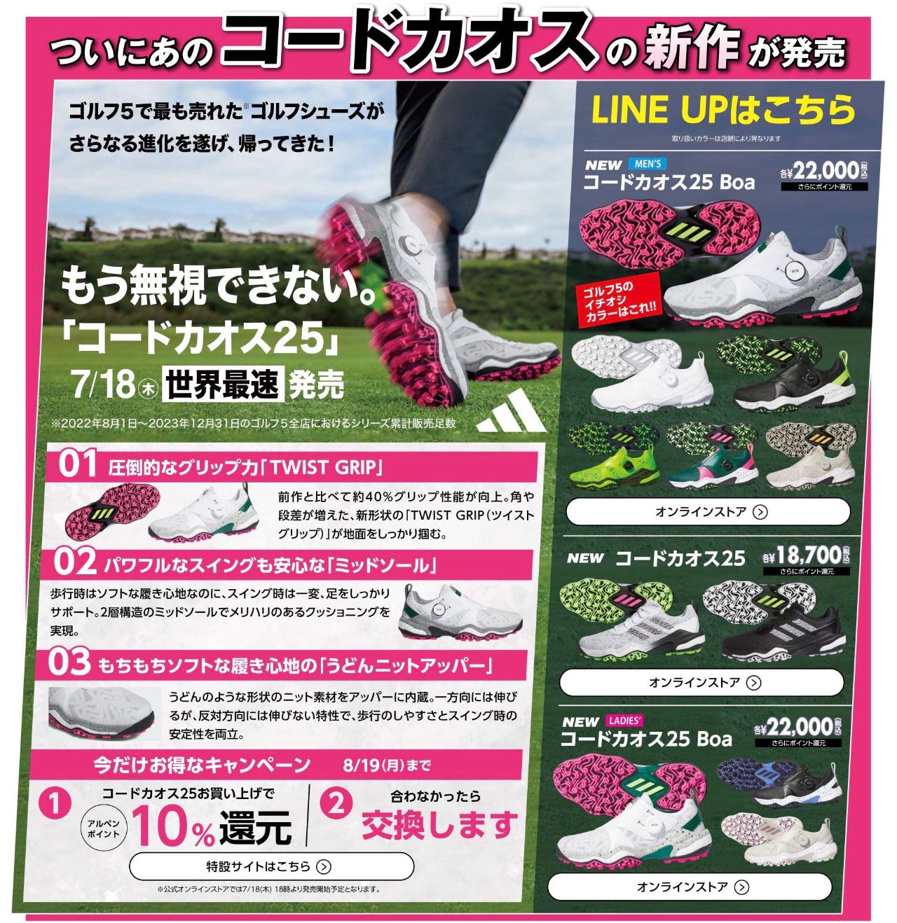 店頭のアディダスゴルフシューズ交換対応いたします!