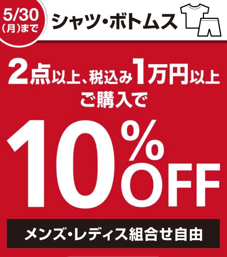 シャツ·ボトムスを2点以上、税込み1万円以上のご購入で