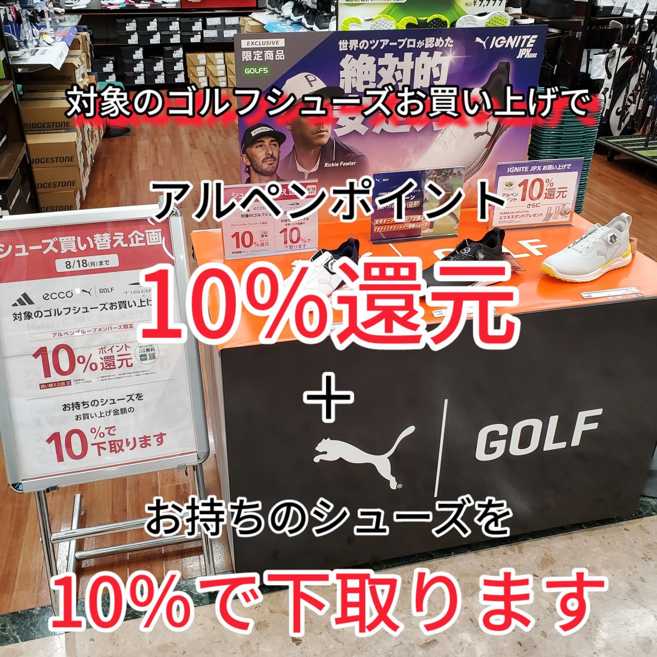 「ティゴラ」「アディダス」「エコー」「プーマ」ブランドの対象シューズをお買い上げで、アルペングループメンバーズ限定「10%」ポイント還元及びお持ちのシューズを「10%」で下取り致します☆彡
