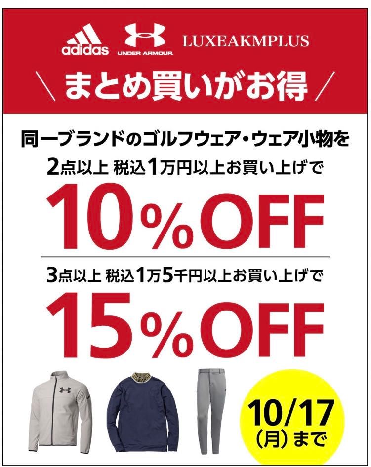 同一ブランドのゴルフウェア・ウェア小物を2点以上、税込1万円以上お買い上げで10%OFF!