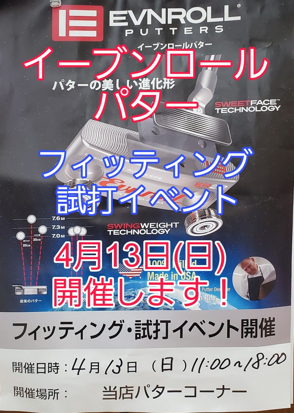 【イーブンロールパター】4月12日(日)「フィッティング・試打イベント」開催します!