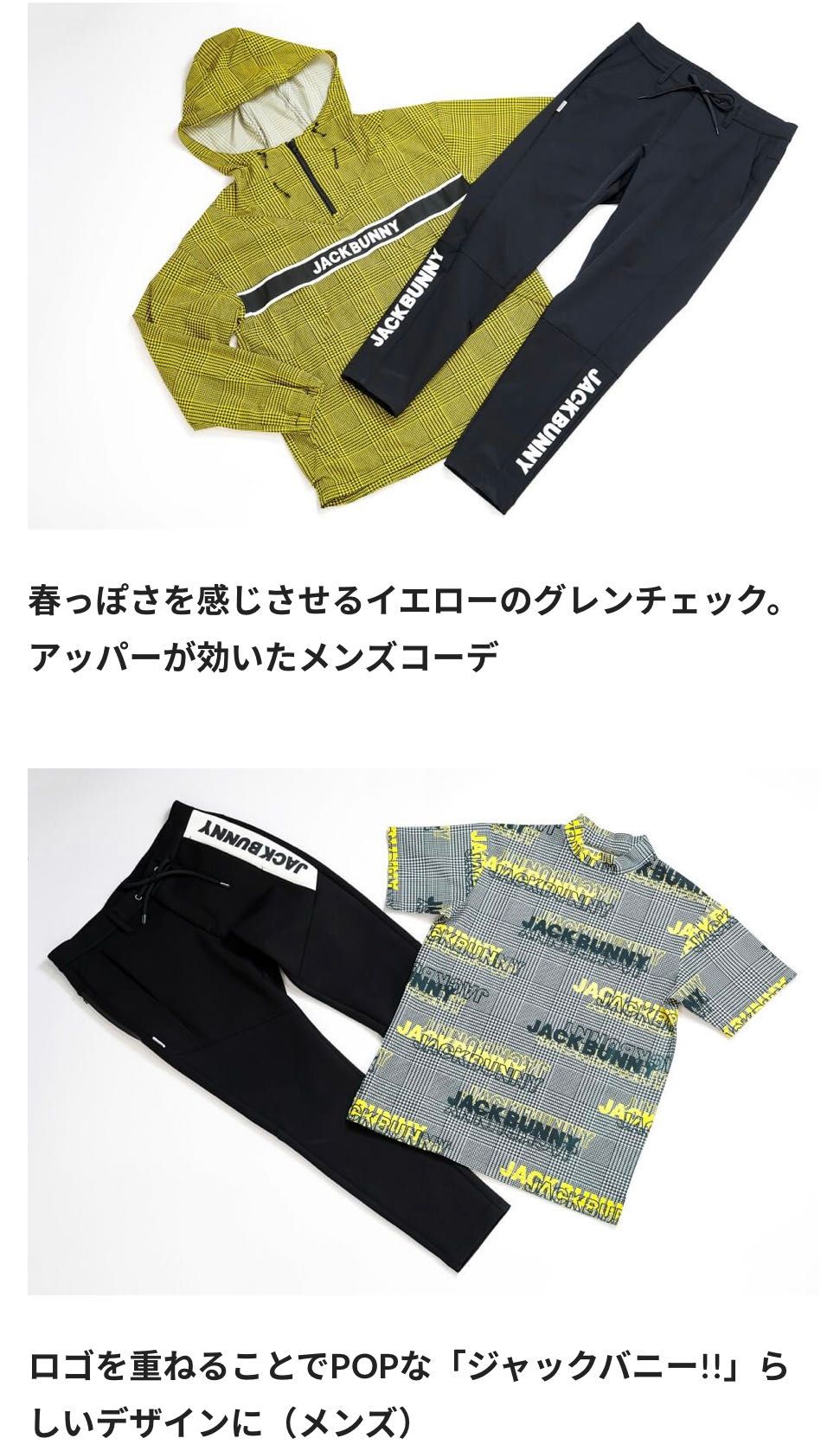 POPで明るい色使いとデザイン性の高さが特徴のパーリーゲイツのDNAを受け継ぎながら、ゴルフの枠にとらわれず、さまざまなモチーフをウェアに落とし込んだジャックバニー!!。