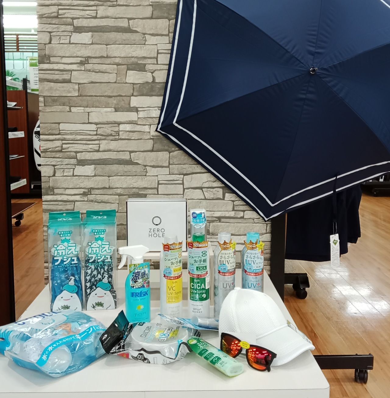 帽子・日傘・日焼け止めクリームと定番グッズに