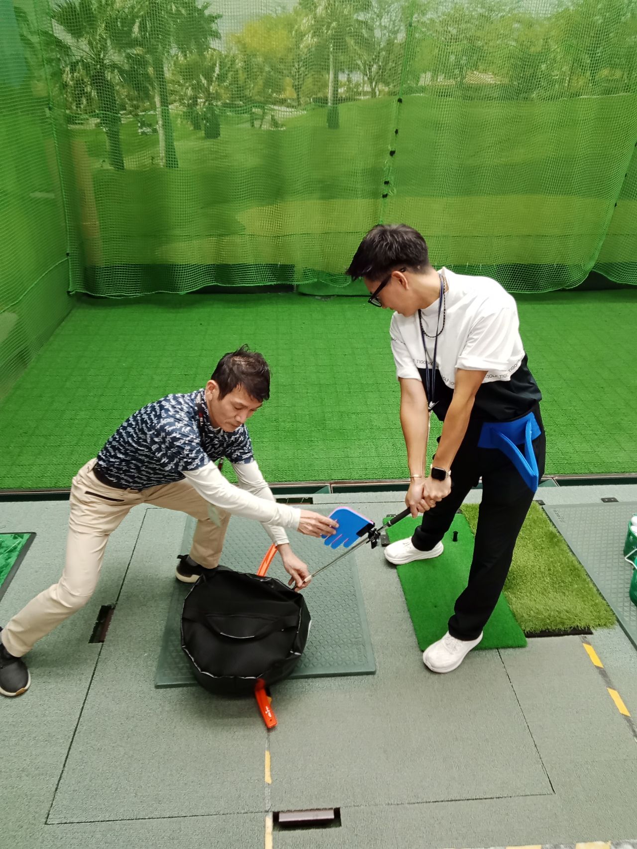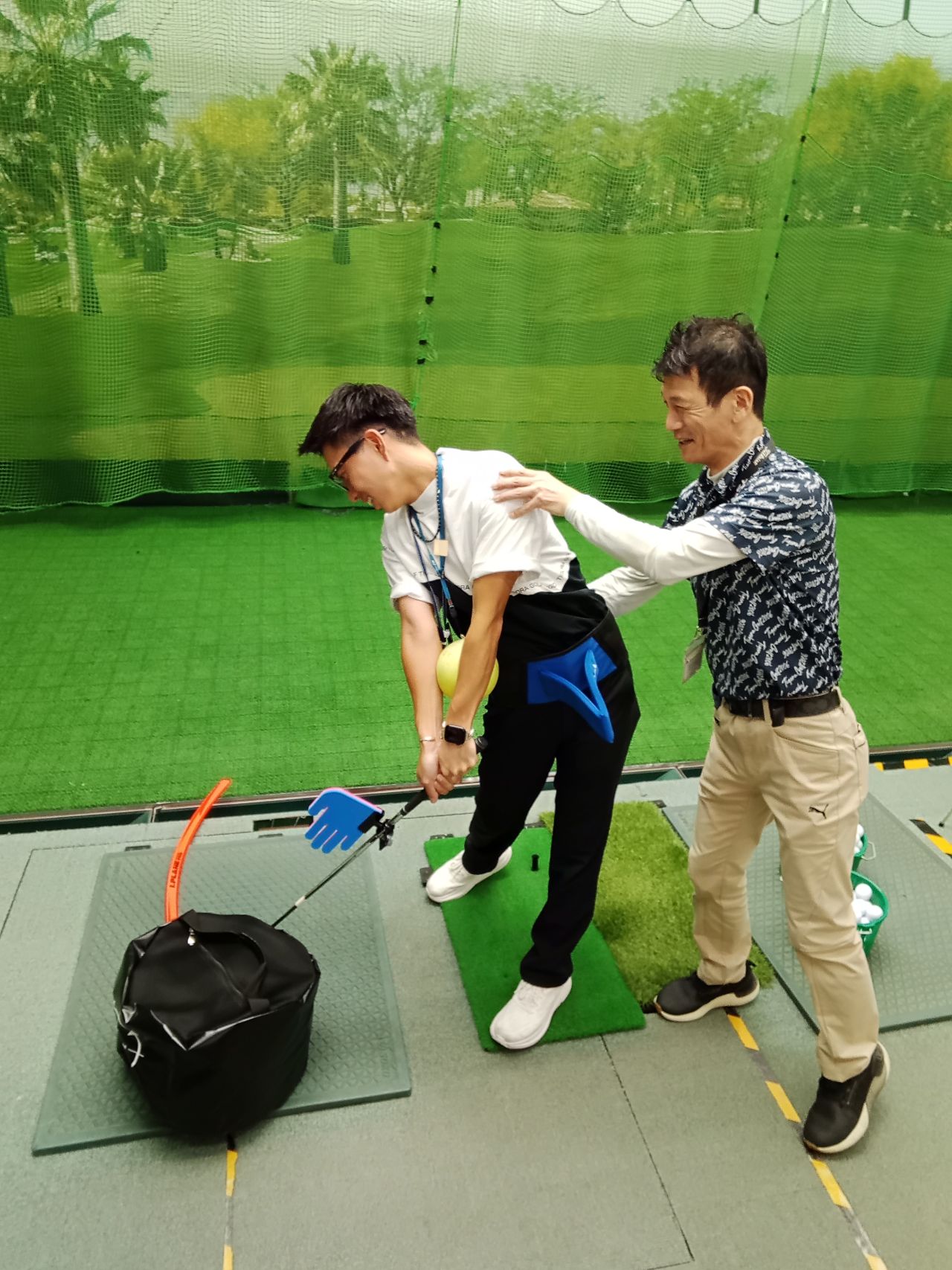 クラブの握り方・構え方のアドバイスを実施・スイング撮影等々