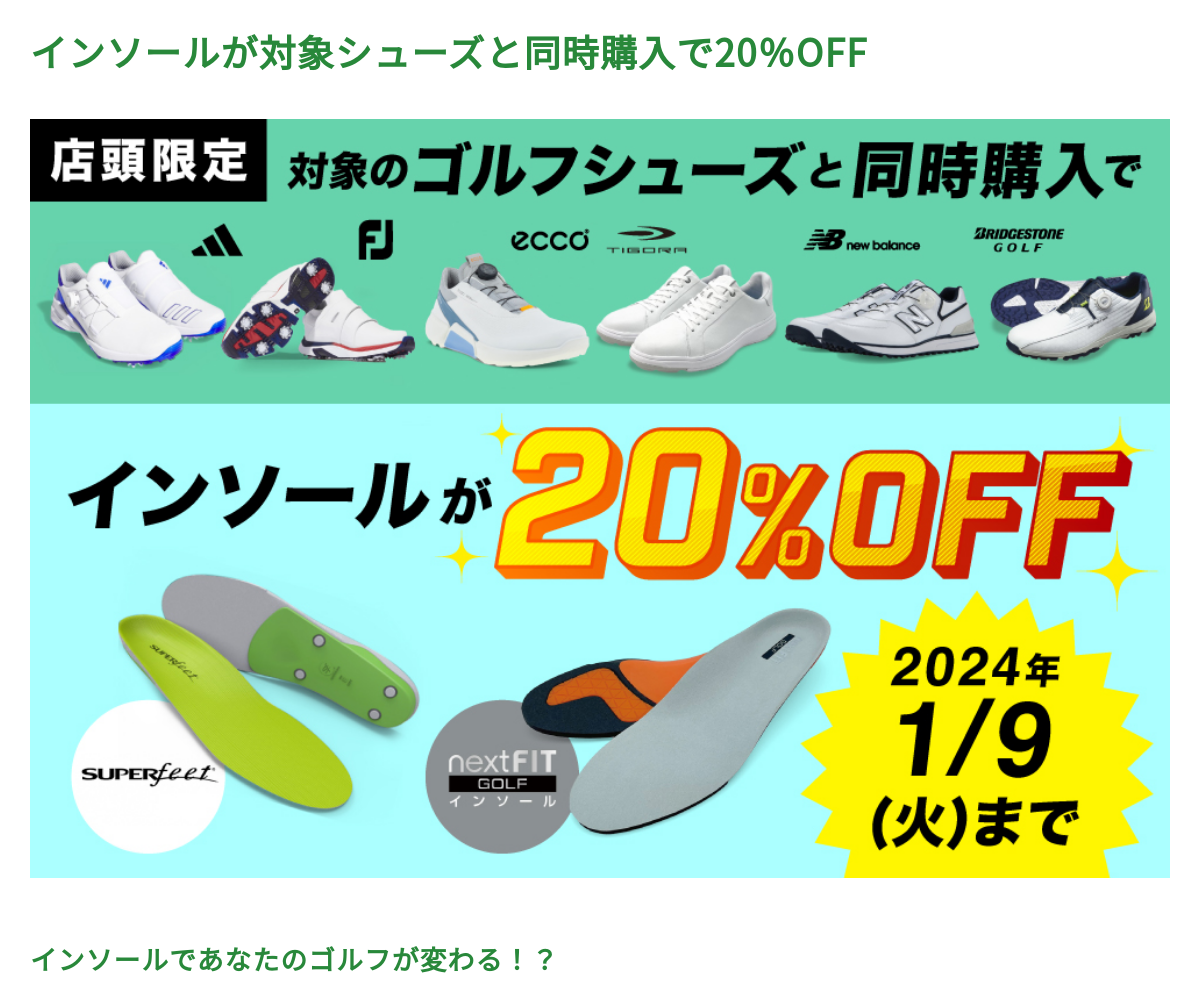 対象シューズと同時購入でインソールが20%OFF!