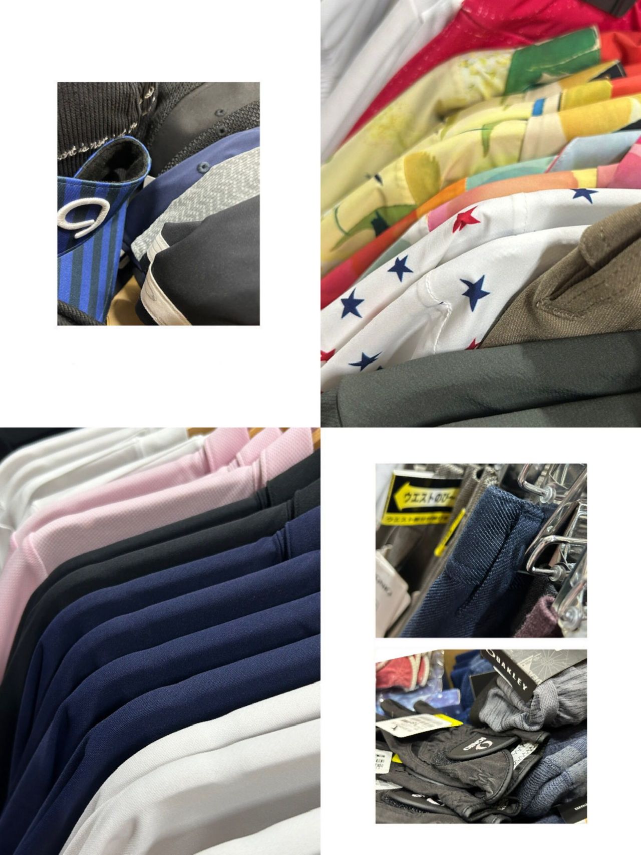 ゴルフウエア、キャップなどのゴルフ小物、シューズなどを