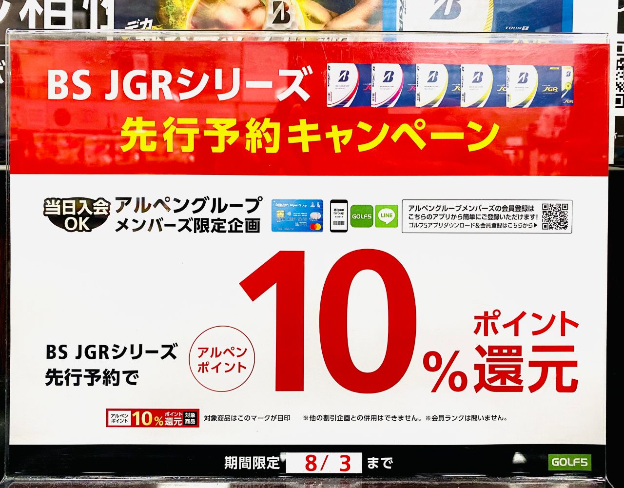 8月4日発売のブリヂストンのnewボール「JGR」も事前予約キャンペーン実施中!