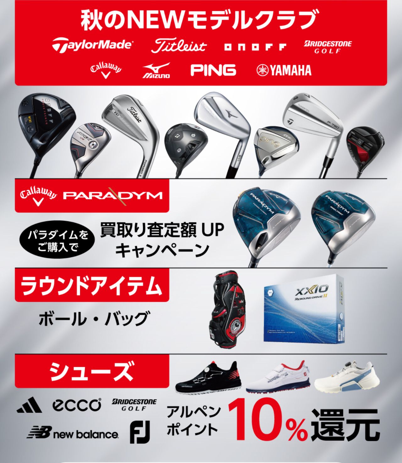 併せてXXIOシリーズから新発売のボール「ゼクシオリバウンドⅡ」もポイント10%還元!
