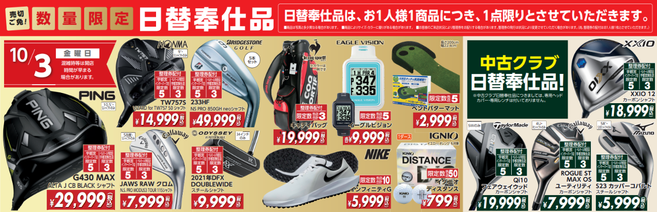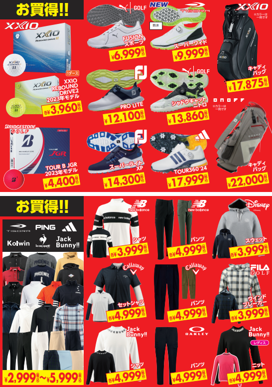クラブはもちろん、シューズやボールなど目白押し!