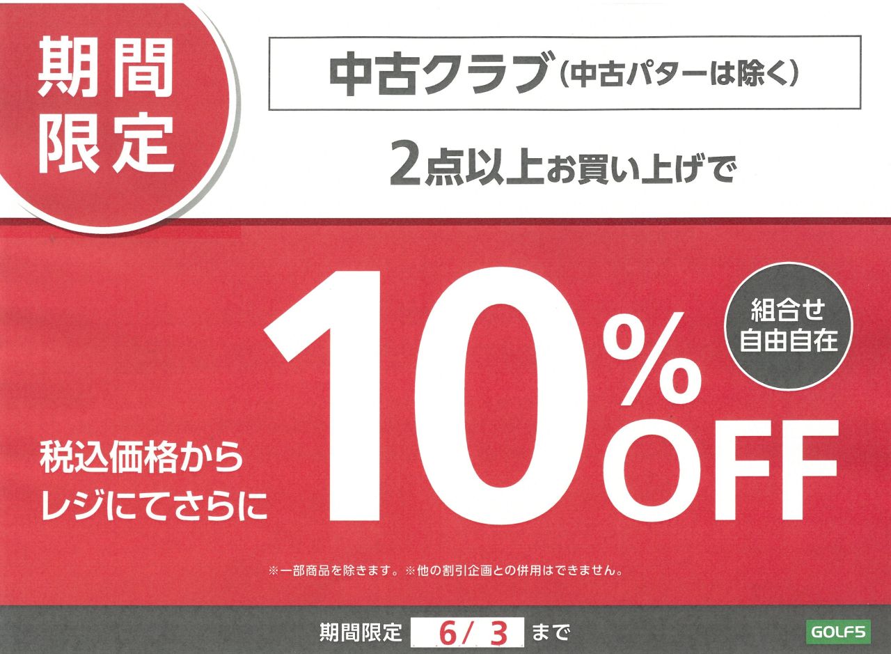 ◆ 中古クラブ2点以上お買い上げでレジにて10%OFF!
