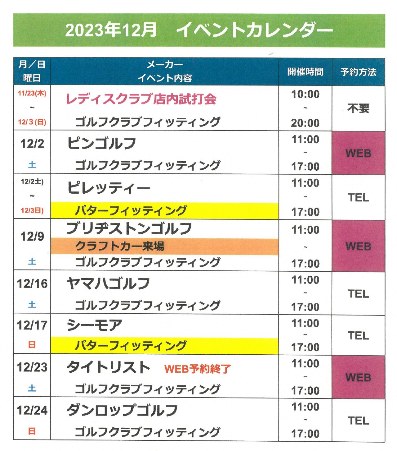 【試打会/パターフィッティング会】12月イベント情報