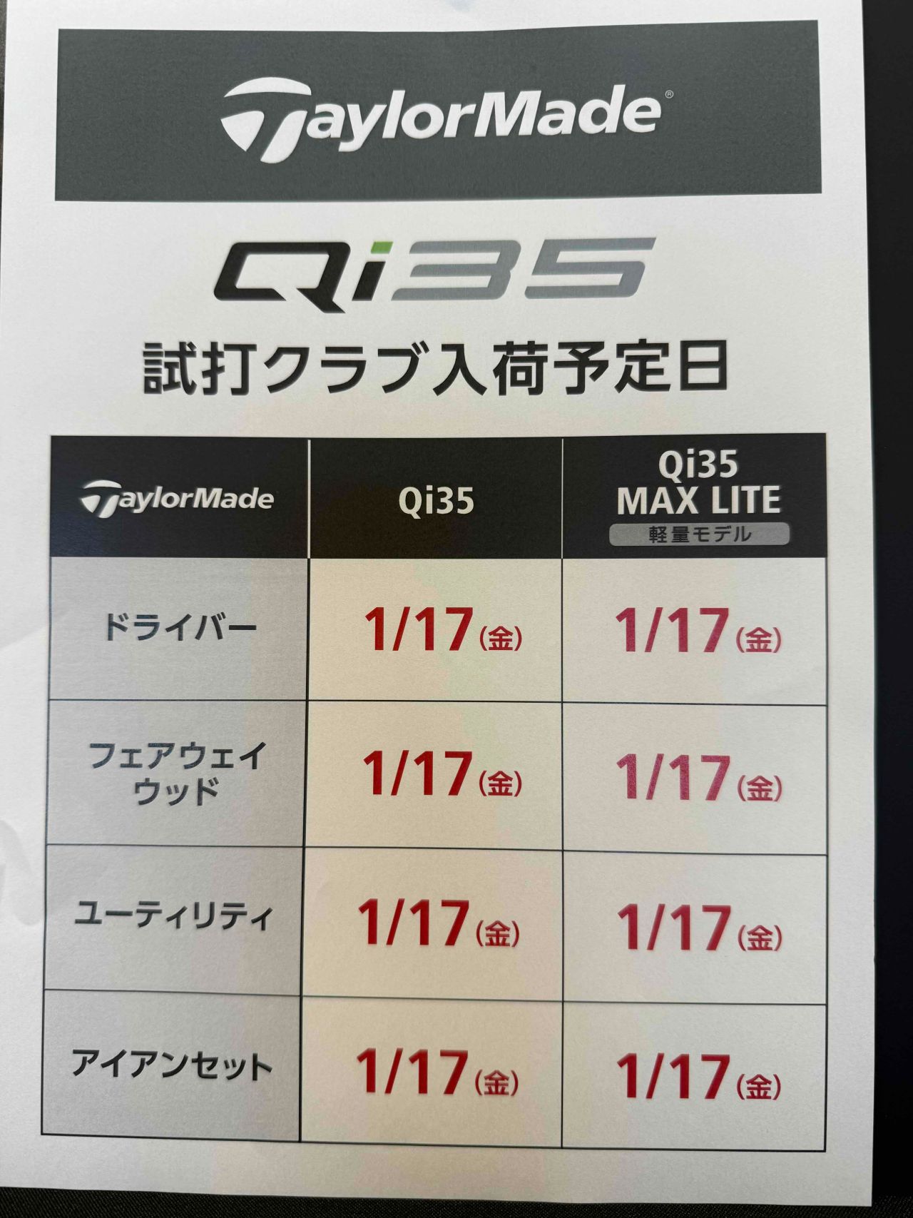 1月17日より試打クラブ入荷致します!